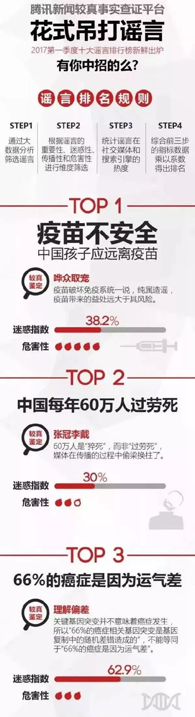 去年,某媒體發(fā)布了醫(yī)療健康類十大謠言榜單,提醒公眾對(duì)醫(yī)療健康類網(wǎng)文提高警惕性。