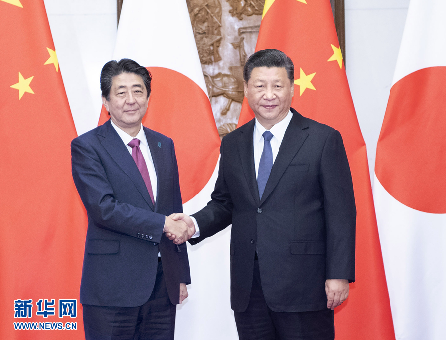 習近平歡迎安倍正式訪華,贊賞安倍近年來多次表明改善和發(fā)展中日關系的積極意愿。習近平指出,中日是近鄰,兩國利益高度交融。作為世界主要經濟體和有重要影響的國家,中日關系長期健康穩(wěn)定發(fā)展,符合兩國人民根本利益,也是本地區(qū)和國際社會普遍期待。今年是中日和平友好條約締結40周年。1978年,兩國老一輩領導人締結和平友好條約,以法律形式確定了兩國持久和平友好大方向,為雙方開展互利合作、謀求共同發(fā)展以及妥善處理歷史、臺灣等敏感問題提供了堅實遵循和保障。在雙方共同努力下,當前中日關系重回正常軌道,重現(xiàn)積極勢頭。這值得雙方共同珍惜。雙方要遵循中日四個政治文件確立的各項原則,堅持和平友好大方向,持續(xù)深化互利合作,推動中日關系在重回正軌基礎上得到新的發(fā)展。