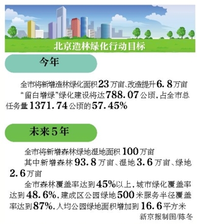 市園林綠化局副局長蔡寶軍告訴記者,新一輪百萬畝造林綠化總體規(guī)劃,將在城市核心區(qū)實現(xiàn)生態(tài)景觀重塑,中心城區(qū)和新城區(qū)多元增綠,形成城市森林與公園綠地為主體的城市綠化體系。未來,北京市將以城市副中心、北京新機(jī)場、冬奧會、永定河、大運河、“三山五園”、十八里店、南中軸等重點區(qū)域綠化為節(jié)點,形成大尺度森林濕地群落、高品質(zhì)綠地公園組團(tuán)、多景觀田園村莊綠化為主體的綠化體系。