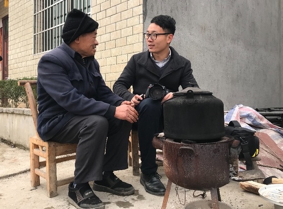 圖為2017年農(nóng)歷臘月27,梁建強(qiáng)(右)在湖北崇陽(yáng)走訪貧困戶。
