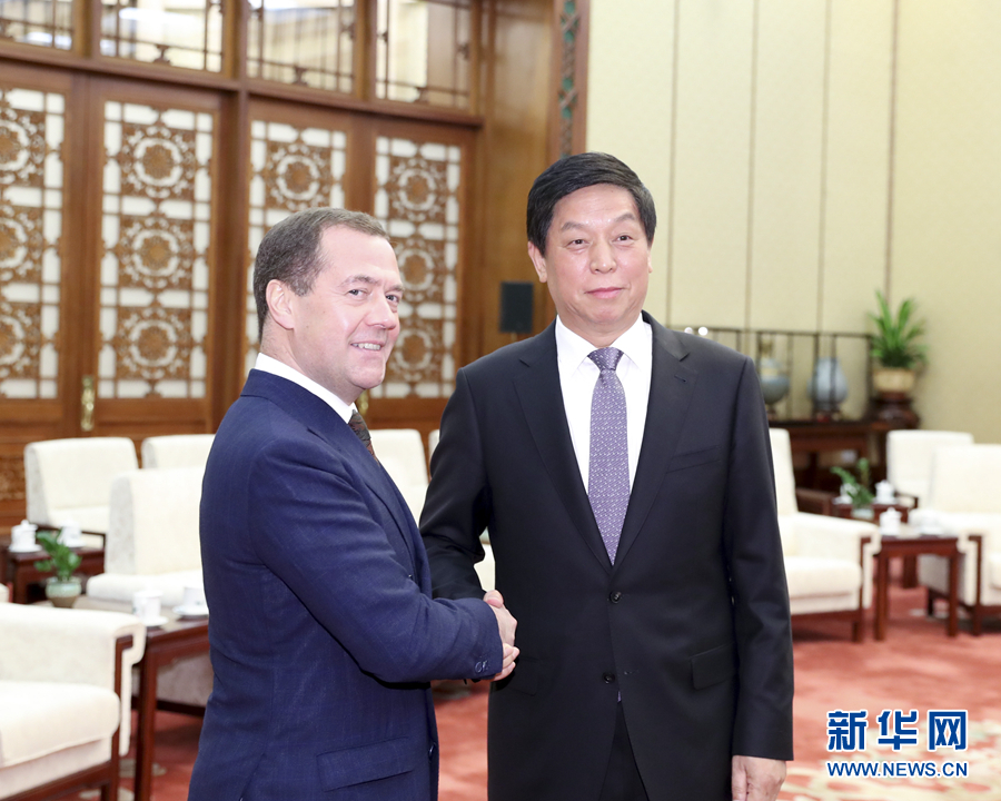 11月7日,全國人大常委會(huì)委員長栗戰(zhàn)書在北京人民大會(huì)堂會(huì)見俄羅斯總理梅德韋杰夫。 新華社記者丁海濤攝