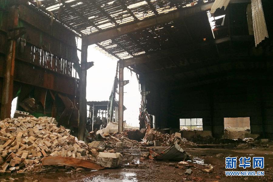這是江蘇省淮安市查處的一處非法鉛冶煉點的廠房內部,地上散落著搭建土冶煉爐的防火磚(9月19日攝)。 新華社記者 朱國亮 攝