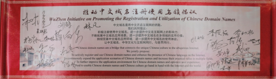 《推動公文域名注冊使用烏鎮(zhèn)協(xié)議》簽名橫幅