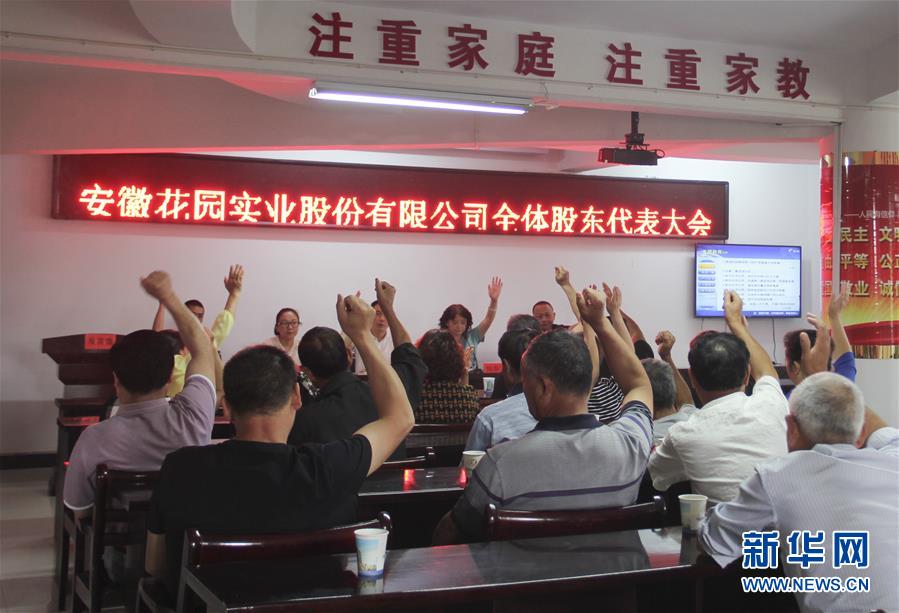 在安徽宣城花園村,來自安徽花園實業(yè)股份有限公司的股東全票通過股權(quán)激勵方案(2017年10月27日攝)。 新華社發(fā)