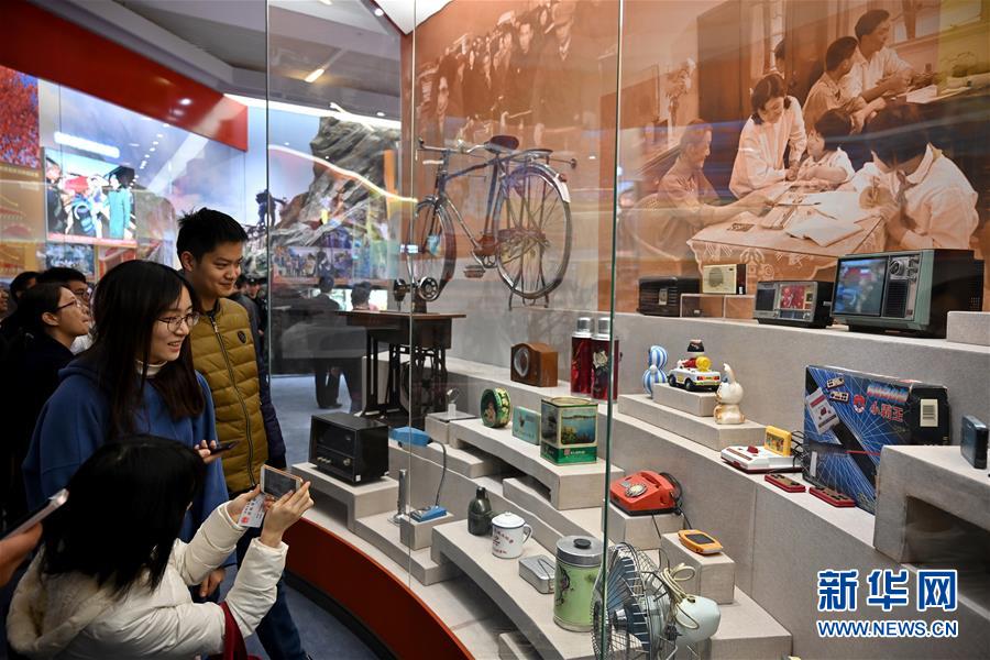 參觀者在“歷史巨變”展區(qū)觀看生活用品陳列。新華社記者李鑫 攝