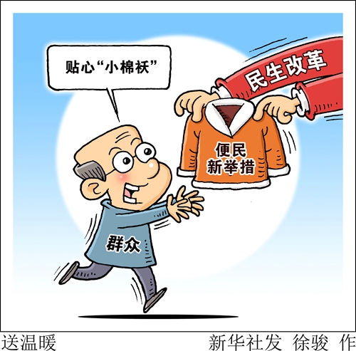 漫畫:送溫暖 新華社發(fā) 徐駿 作