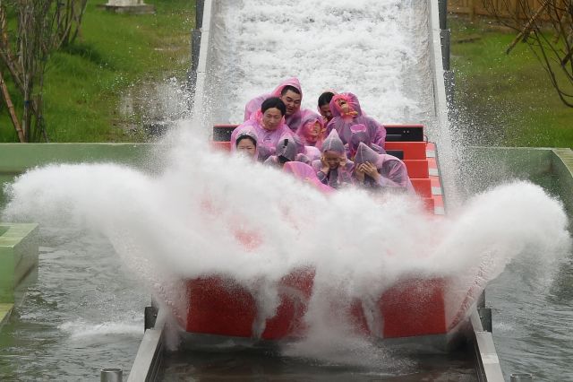 游客在浙江寧波中華復(fù)興文化園非物質(zhì)文化博覽園體驗(yàn)游樂(lè)項(xiàng)目 ( 黃宗治/攝 )