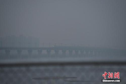 12月1日0時(shí),北京市再啟動(dòng)空氣重污染黃色預(yù)警,圖為一列高鐵在霧霾中經(jīng)過(guò)北京房山。 中新社記者 崔楠 攝