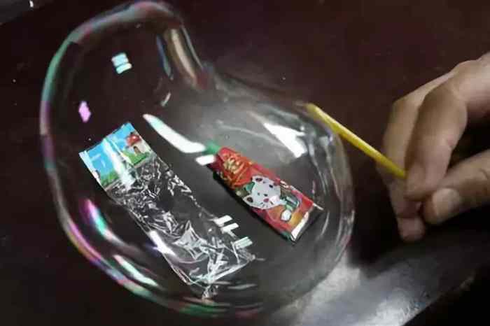 不是泡泡糖,是摳下一坨膠,堵在吸管上,用一定的肺活量吹出一個泡泡,捏緊從吸管上拔下來再把玩。