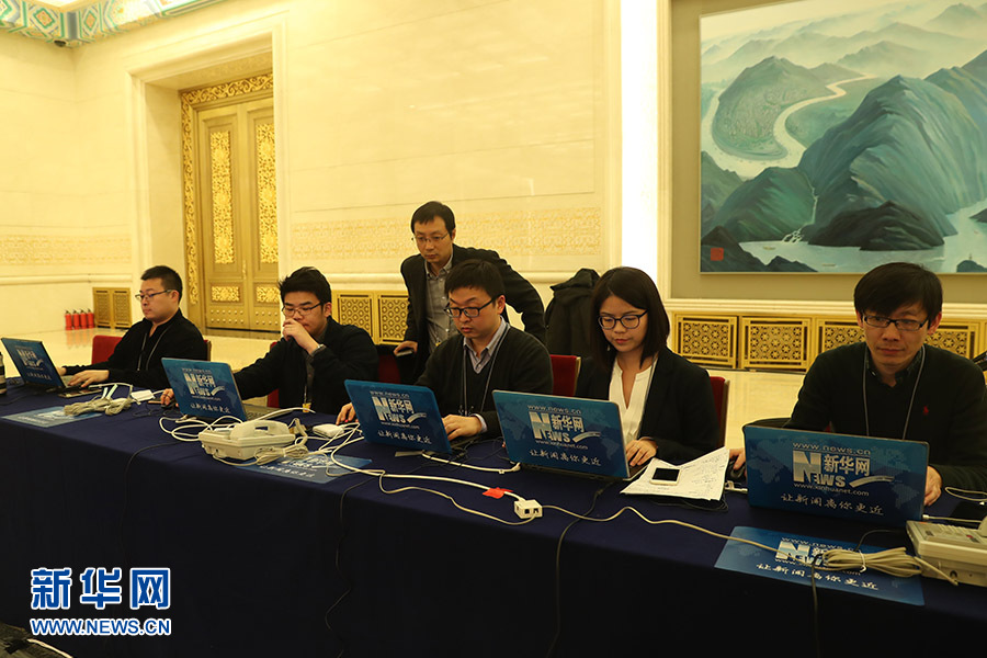 民主黨派中央和全國工商聯(lián)領(lǐng)導(dǎo)人記者會3月6日下午在人民大會堂金色大廳舉行,邀請民革中央主席萬鄂湘、民盟中央主席丁仲禮、民建中央主席郝明金、民進(jìn)中央主席蔡達(dá)峰、農(nóng)工黨中央主席陳竺、致公黨中央主席萬鋼、九三學(xué)社中央主席武維華、臺盟中央主席蘇輝、全國工商聯(lián)主席高云龍回答記者提問。圖為現(xiàn)場直播團(tuán)隊正在進(jìn)行準(zhǔn)備工作。新華網(wǎng)/中國政府網(wǎng) 陳杰 攝