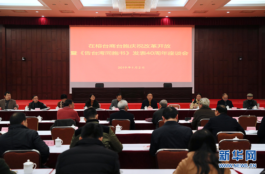 1月2日,在榕臺(tái)商臺(tái)胞慶祝改革開放暨《告臺(tái)灣同胞書》發(fā)表40周年座談會(huì)在福州舉行。新華社記者 姜克紅 攝