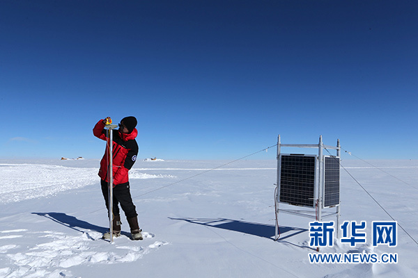 南極內(nèi)陸冰蓋冰流運(yùn)動監(jiān)測,是南極內(nèi)陸考察的重要觀測項目,也是一個長期連續(xù)觀測項目??瓶缄爢T、武漢大學(xué)中國南極測繪研究中心副教授楊元德當(dāng)天利用GPS測量了冰流速。