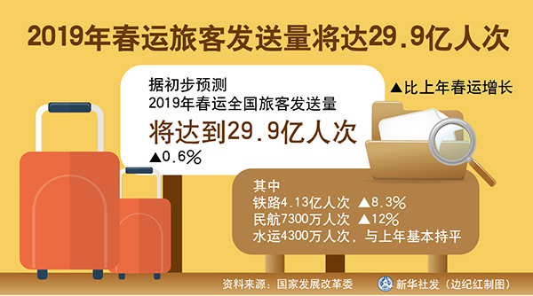 圖表:2019年春運(yùn)旅客發(fā)送量將達(dá)29.9億人次 新華社發(fā) 邊紀(jì)紅 制圖