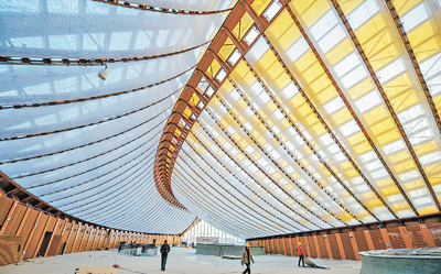 正在建設(shè)中的中國館內(nèi)景。記者 賀勇攝