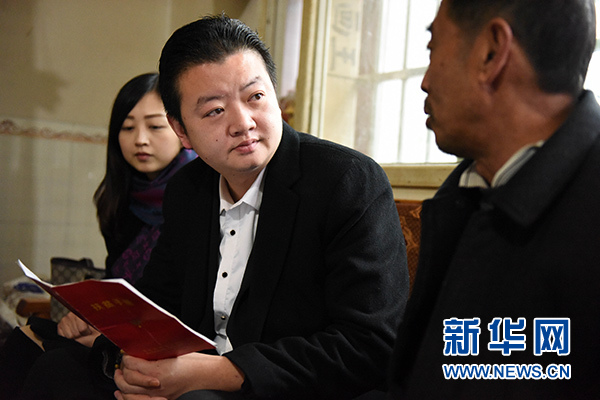 四川省敘永縣后山鎮(zhèn)三斗米村駐村第一書記胡凌鳴(右一)在貧困戶趙世蓮(右二)家了解脫貧進(jìn)展情況(1月15日攝)。新華社記者 陳天湖 攝