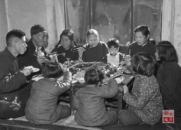 1953年,天津市漢沽區(qū)蘆臺王德鑄(左一)一家吃團圓飯。
