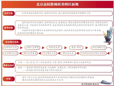 北京市人社局介紹,2005年,北京出臺(tái)了《北京市高等學(xué)校教師職務(wù)聘任管理辦法(試行)》,在全國(guó)率先下放高校職稱評(píng)審權(quán),開展了高校教師職務(wù)聘任制改革,將教師崗位聘任條件和職稱評(píng)價(jià)標(biāo)準(zhǔn)合二為一,尊重用人單位的自主權(quán),由高校根據(jù)學(xué)科特色和發(fā)展需要,制定不同層次教師崗位的聘任條件,按照規(guī)范的程序,以崗位聘用替代職稱評(píng)價(jià),實(shí)現(xiàn)“想用的評(píng)得上,評(píng)得上的用得好”。
