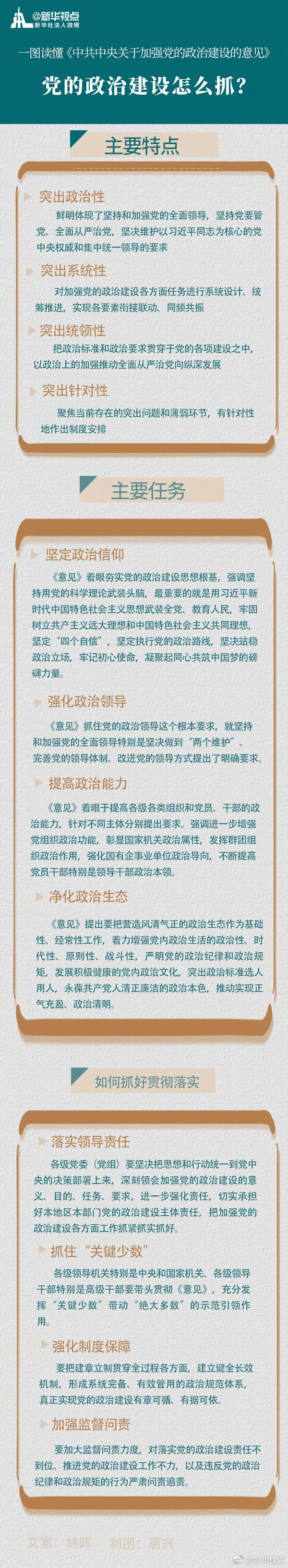 黨的政治建設(shè)是黨的根本性建設(shè),決定黨的建設(shè)方向和效果。新華社27日受權(quán)發(fā)布《中共中央關(guān)于加強黨的政治建設(shè)的意見》。意見有什么特點?加強黨的政治建設(shè)有哪些主要任務(wù)?如何抓好落實?戳圖了解↓ ????
