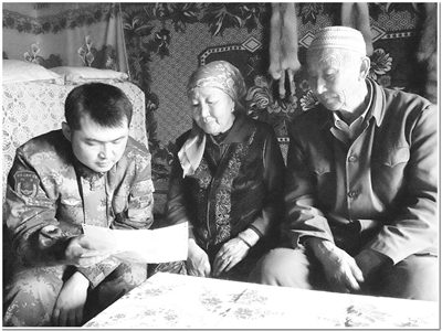 “尋親”的線索就這樣斷了。正當(dāng)大家一籌莫展時,官兵們從另外一個村打聽、找到了恰依肯老人的外孫,這才得知,恰依肯夫婦早在10年前就搬到了鐵熱克提鄉(xiāng)阿克哈巴南村生活。
