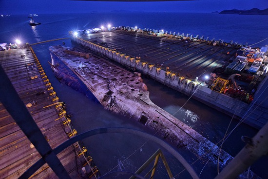 在打撈“世越號(hào)”的兩年間,潛水隊(duì)的隊(duì)員們每天都能看到,正對(duì)著失事海域的一處山頂上,遇難者家屬在那里支起一頂帳篷。直到沉船出水那天,帳篷才收起,結(jié)束漫長(zhǎng)的守望。