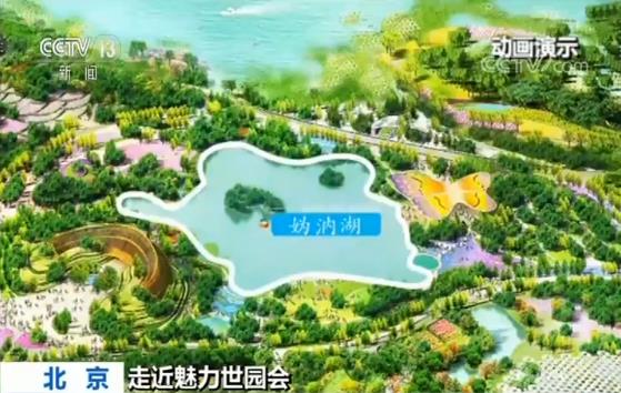 央視記者羅子瑛說,幾年前媯水河的南岸還是一片田野,2014年5月當(dāng)園區(qū)的規(guī)劃者走到媯水河的拐彎處,這個位置,往北他們看到了媯水河最為寬闊的水面,而水面之上就是著名的冠帽山,往西北方向看則是小海坨山,山川形勝,圖畫天然。從這個被規(guī)劃者稱為“自然感動點”的位置出發(fā),引山水入園,沿著兩條延長線進行規(guī)劃,形成了現(xiàn)在園區(qū)的兩條軸線,山水園藝軸和世界園藝軸。