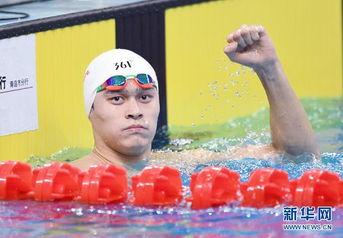 3月27日,浙江隊選手孫楊在賽前出場。當(dāng)日,在青島舉行的2019年全國游泳冠軍賽暨世錦賽選拔賽男子800米自由泳決賽中,浙江隊選手孫楊以7分48秒03的成績獲得冠軍。 新華社記者朱崢攝