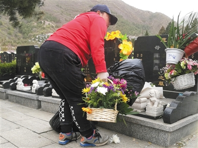 然而記者在園中發(fā)現(xiàn)了奇怪的身影。在一處偏僻的角落里,一名騎三輪車(chē)的男子一直默默觀望著。待祭掃者離開(kāi)后,他騎車(chē)來(lái)到墓前,迅速收走剛擺上的花束,隨后匆匆離去。