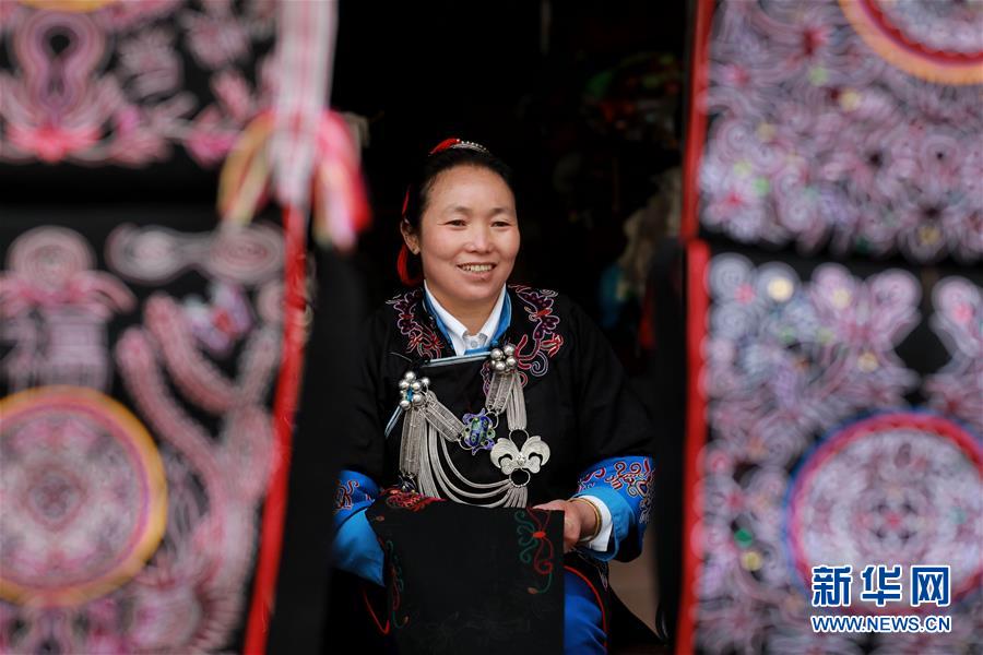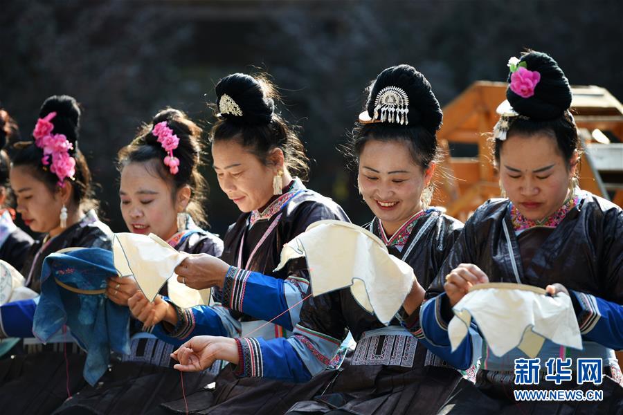貴州省錦屏縣平秋鎮(zhèn)平秋村婦女在刺繡