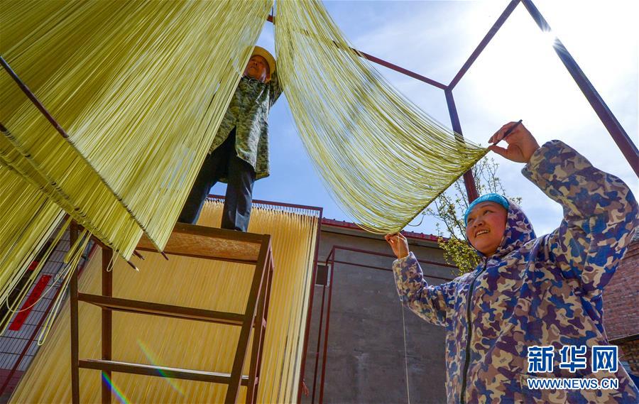 村民在晾曬手工拉面