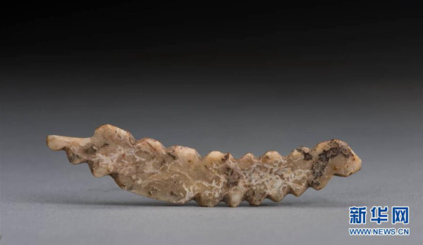 這是河南鞏義雙槐樹(shù)遺址出土的牙雕蠶(資料照片)。新華社發(fā)(鄭州市文物考古研究院提供)