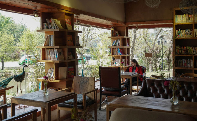 4月12日,一位女士在金嶺村小張灣古建筑群的茶室里休息。湖北省大悟縣金嶺村,5年前還是一個貧窮落后的偏僻山村,通過整合當?shù)毓琶窬淤Y源,發(fā)展鄉(xiāng)村游,如今已經(jīng)成為一個生態(tài)宜居的美麗鄉(xiāng)村,2018年接待游客超過20萬人次。新華社記者程敏攝