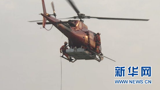 直升機(jī)到達(dá)傷者受困地點(diǎn),下降至距離傷者所在地面50米的位置開始懸停,消防員唐運(yùn)德攜帶救援設(shè)備,依靠一根繩索,進(jìn)行了垂直速降。