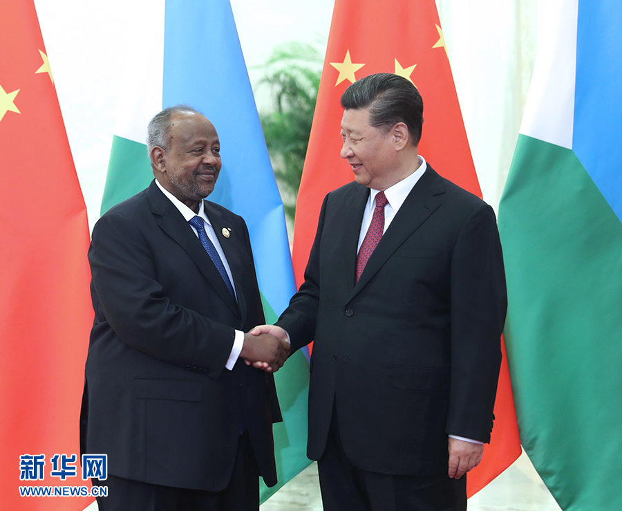 4月28日,國家主席習(xí)近平在北京人民大會堂會見吉布提總統(tǒng)蓋萊。 新華社記者 翟健嵐 攝