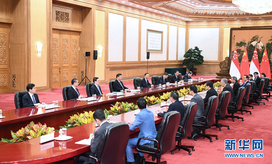 4月29日,國(guó)家主席習(xí)近平在北京人民大會(huì)堂會(huì)見(jiàn)新加坡總理李顯龍。 新華社記者 謝環(huán)馳 攝