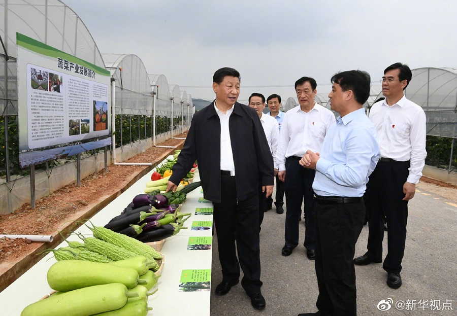20日下午,習(xí)近平總書記來到江西省于都縣梓山富硒蔬菜產(chǎn)業(yè)園考察調(diào)研。產(chǎn)業(yè)園以“龍頭企業(yè)+合作社+農(nóng)戶和貧困戶”發(fā)展模式,帶動了當(dāng)?shù)卮迕衩撠氈赂?。看到總書記來了,正在大棚里勞作的鄉(xiāng)親們激動地說:“感謝黨的好政策,讓我們過上了幸福生活!”習(xí)近平對鄉(xiāng)親們說:“共產(chǎn)黨就是為人民群眾謀幸福的,黨中央想的就是千方百計(jì)讓老百姓過上好日子。芝麻開花節(jié)節(jié)高,今后日子會更好!”(文字:張曉松 攝影:謝環(huán)馳、鞠鵬)