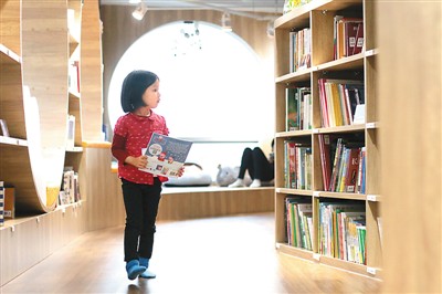 繪本圖書館里,孩子坐在家長(zhǎng)身旁,捧著手中的書讀得津津有味。場(chǎng)館設(shè)計(jì)之初,王慧瑾親自“操刀”,定下了原木簡(jiǎn)約風(fēng)格的主基調(diào),就是為了滿足家長(zhǎng)的高品質(zhì)審美需求,力圖打造一個(gè)家長(zhǎng)和孩子都可以樂在其中的悠閑天地。