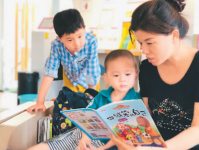 兒童圖書館內(nèi),家長(zhǎng)正在為孩子閱讀繪本。記者 孫亞慧攝