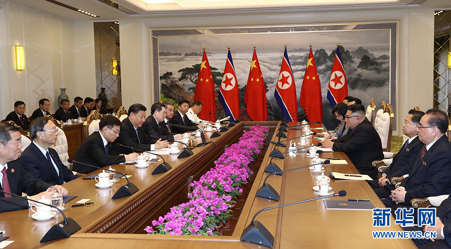 新華社平壤6月20日電(記者李忠發(fā) 陳贄 郝薇薇)6月20日,中共中央總書(shū)記、國(guó)家主席習(xí)近平在平壤錦繡山迎賓館同朝鮮勞動(dòng)黨委員長(zhǎng)、國(guó)務(wù)委員會(huì)委員長(zhǎng)金正恩會(huì)談。雙方一致同意,在新的歷史起點(diǎn)上,中朝雙方愿不忘初心、攜手前進(jìn),共同開(kāi)創(chuàng)兩黨兩國(guó)關(guān)系的美好未來(lái)。
