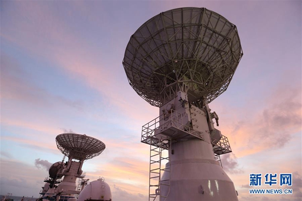 6月25日拍攝的遠望3號船海上測控的雷達天線。新華社記者 李雨澤 攝