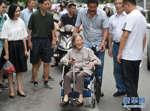 6月30日,呂銀芬(中)在家人陪同下回到七一村。新華社記者 韓傳號 攝