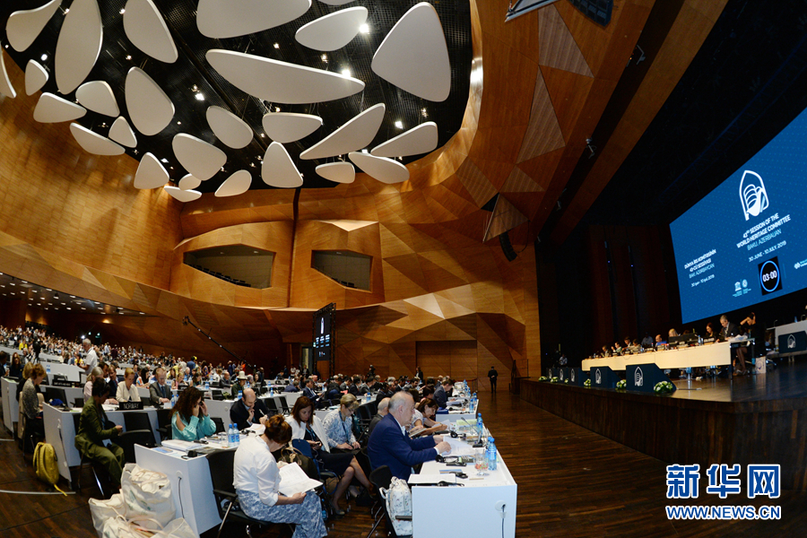 這是7月5日在阿塞拜疆巴庫(kù)拍攝的世界遺產(chǎn)大會(huì)現(xiàn)場(chǎng)。 新華社發(fā)(巴巴耶夫 攝)