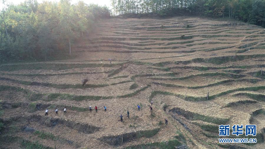 在四川省青川縣青坪村,當(dāng)?shù)卮迕裨诜N植白茶(2018年10月29日無人機(jī)拍攝)。新華社記者 王天聰 攝