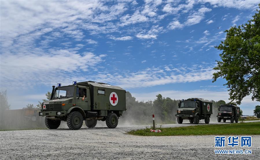 這是7月5日在德國費爾德基興訓(xùn)練基地拍攝的中德“聯(lián)合救援-2019”衛(wèi)勤實兵聯(lián)合演習(xí)整合訓(xùn)練現(xiàn)場。新華社記者 連振 攝