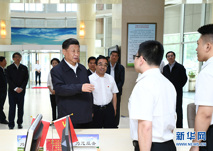 7月15日至16日,中共中央總書(shū)記、國(guó)家主席、中央軍委主席習(xí)近平在內(nèi)蒙古考察并指導(dǎo)開(kāi)展“不忘初心、牢記使命”主題教育。這是16日上午,習(xí)近平在內(nèi)蒙古自治區(qū)自然資源廳自然資源政務(wù)大廳同工作人員交談,了解開(kāi)展主題教育和落實(shí)便捷高效政務(wù)服務(wù)等情況。 新華社記者 謝環(huán)馳 攝