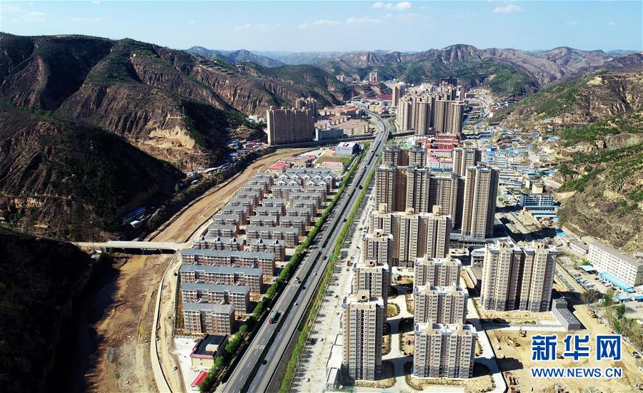 陜西延安安塞區(qū)的惠澤園移民搬遷安置小區(qū)(4月23日無(wú)人機(jī)拍攝)。新華社記者 劉瀟 攝