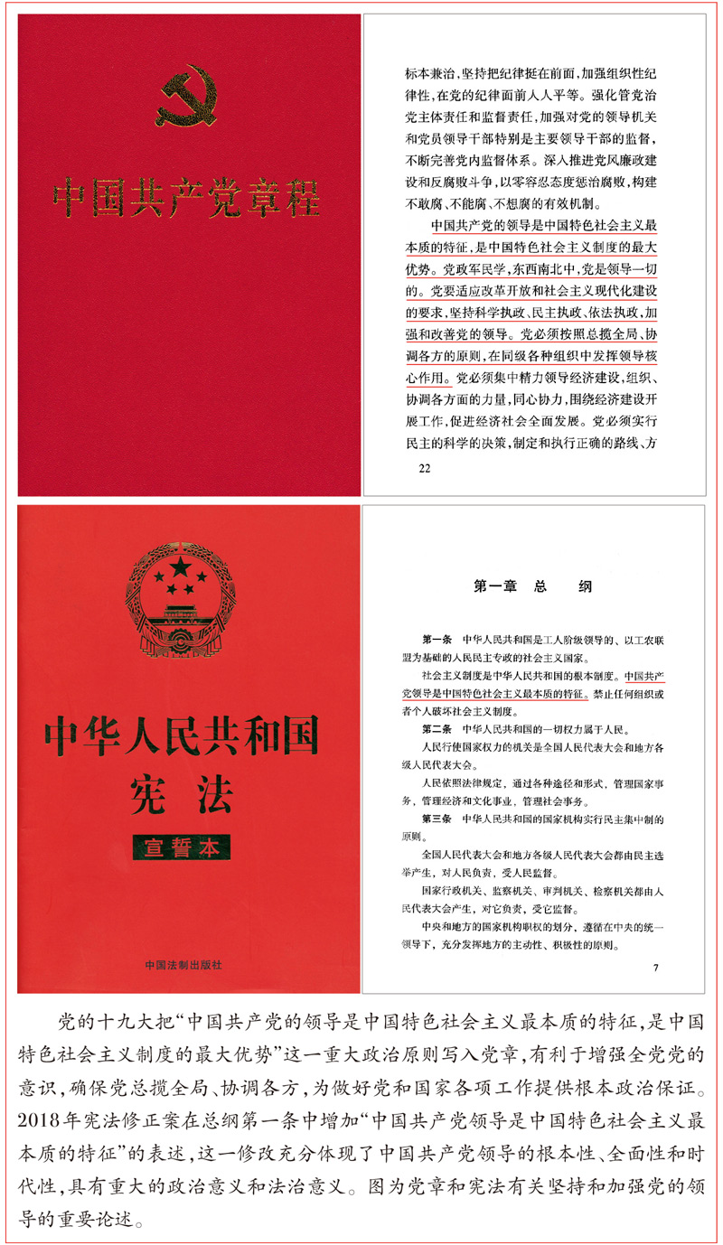 ——發(fā)揮總攬全局、協調各方的堅強領導核心作用。中國共產黨是中國特色社會主義事業(yè)的領導核心,這是我們黨成功實現領導的重要方式,也是我國社會主義政治制度優(yōu)越性的一個突出特點。古人講的“六合同風,九州共貫”,在當代中國,沒有中國共產黨這樣一個堅強的領導核心是做不到的,也是不可想象的。毛澤東同志指出:“工、農、商、學、兵、政、黨這七個方面,黨是領導一切的?!编囆∑酵痉磸蛷娬{加強黨中央的集中統(tǒng)一領導、維護黨中央的權威。黨的十八大以來,習近平總書記反復強調,黨政軍民學,東西南北中,黨是領導一切的。在國家治理體系的大棋局中,黨中央是坐鎮(zhèn)中軍帳的“帥”,車馬炮各展其長,一盤棋大局分明。新中國70年來,黨的領導核心作用體現到黨治國理政的全部活動之中,貫穿到黨領導經濟建設、政治建設、文化建設、社會建設和生態(tài)文明建設各領域各方面,中國共產黨始終是全國人民戰(zhàn)勝風險挑戰(zhàn)的主心骨、頂梁柱。正因為如此,民族復興的航船才能成功闖過各種急流險灘;我們黨才能帶領人民以壓倒一切困難而不被困難壓倒的氣概,攻堅克難、化危為機,做到“青山繚繞疑無路,忽見千帆隱映來”,得到人民的信賴、擁護和支持。