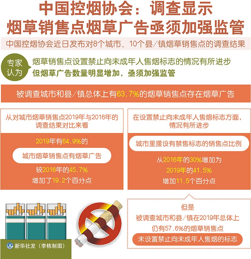 中國控?zé)焻f(xié)會(huì)副會(huì)長廖文科說,未成年人保護(hù)法中有“經(jīng)營者應(yīng)當(dāng)在顯著位置設(shè)置不向未成年人出售煙酒的標(biāo)志”的規(guī)定,亟須進(jìn)一步加強(qiáng)監(jiān)管,堅(jiān)決取締違法煙草廣告。