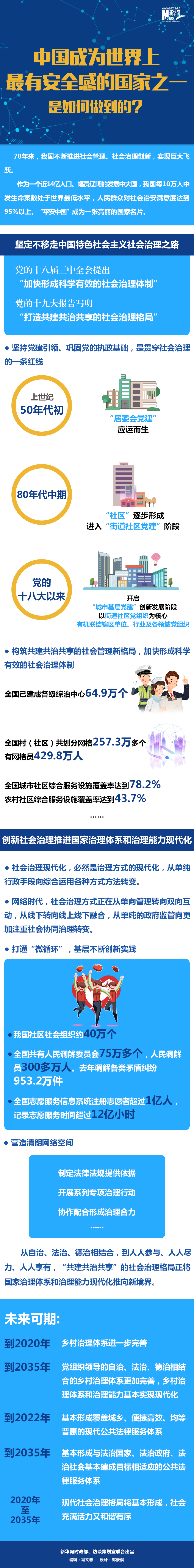 70年篳路藍(lán)縷,70年櫛風(fēng)沐雨。新中國持續(xù)推進(jìn)社會領(lǐng)域變革、堅定走向社會治理現(xiàn)代化,呈現(xiàn)出經(jīng)濟(jì)持續(xù)健康發(fā)展、社會大局穩(wěn)定的良好局面。中國成為世界上最有安全感的國家之一。