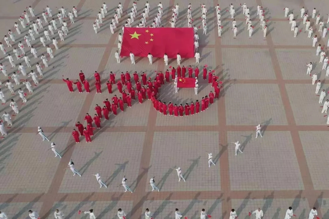 2019年9月28日,河南濮陽(yáng)。中原油田離退休管理處老年太極拳協(xié)會(huì)舉辦太極拳展示,慶祝中華人民共和國(guó)成立70周年。作者:楊煥文