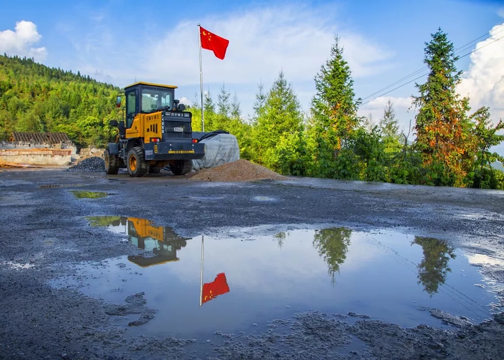 2019年9月27日,湖北利川。文化廣場(chǎng)建設(shè)工地,紅旗高高飄揚(yáng),以這種特有的喜慶方式迎接國(guó)慶。作者:利川六哥